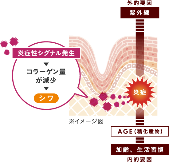 加齢や紫外線によって減少したり変性してしまう真皮コラーゲンの産生を促進してシワを改善します。
