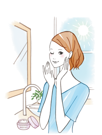 手のひらで顔全体にやさしくのばし、両手で包み込むようにしてうるおいを閉じ込めます。